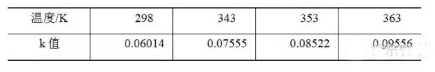 表1不同溫度下計算的k值